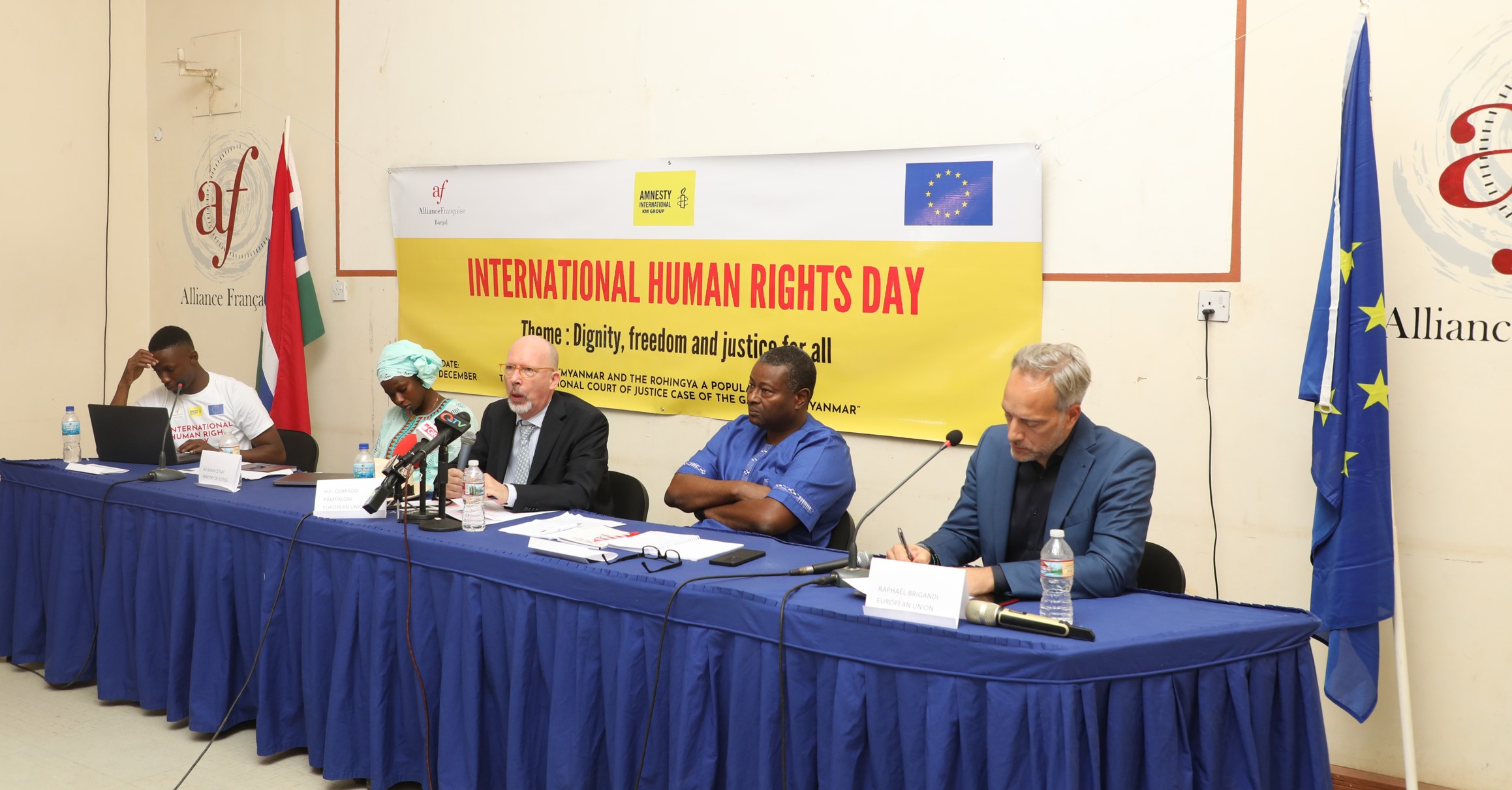 On December 9th 2022, International Human Rights Day was officially celebrated at the Alliance Française de Banjul. First, Amnesty International gave a lecture on the state of respect for human rights in the Gambia. Their presentation was followed by a round table discussion with the European Union on “Myanmar and the Rohingya population: The International Court of Justice case of the Gambia vs Myanmar”. Finally, the fresco was inaugurated by the EU ambassador to The Gambia.