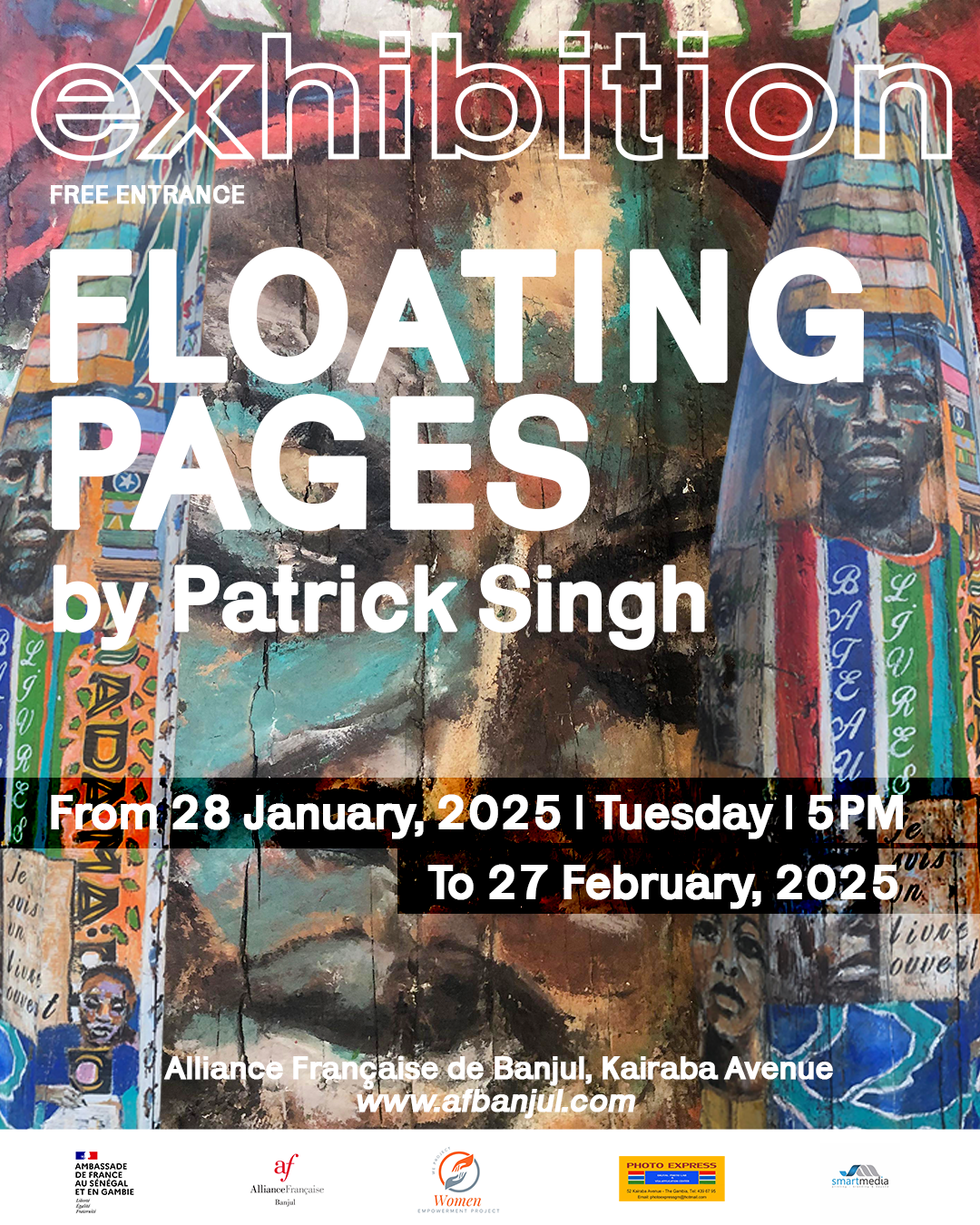 The opening of Patrick Singh’s exhibition, titled Floating Pages, took place on January 28th, 2025, at the Alliance Française de Banjul. The artist showcased the result of his residency, exploring Gambian society through his drawings, portraits, and immersive installations.