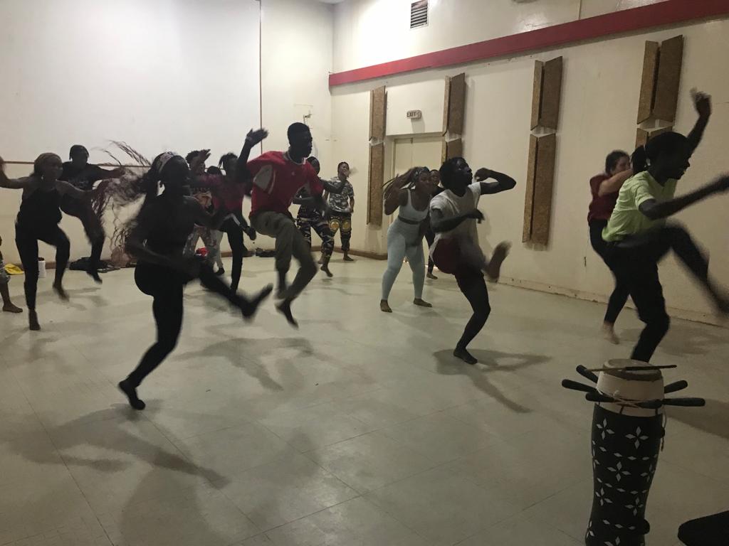 In partnership with the Alliance Française de Ziguinchor, the artistic residency of Guiss Guiss Bou Bess and Kaani Urban at the Alliance Française de Banjul consisted largely of sharing skills and intercultural exchanges. Chico, a dancer with the Mbossé Danse Compagnie (Kaolack) was affiliated to GGBB and also resided at the Musa Ngum artists’ house to give contemporary dance training to Gambian amateur and semi-professional dancers belonging to the Flex Fuzion Academy. These two dance courses enabled them to learn new techniques and create an original choreography. An additional workshop, this time a musical one, was given by GGBB musicians to the dancers to support the potential for mutation and innovation afforded by the association of sabar with contemporary dance.