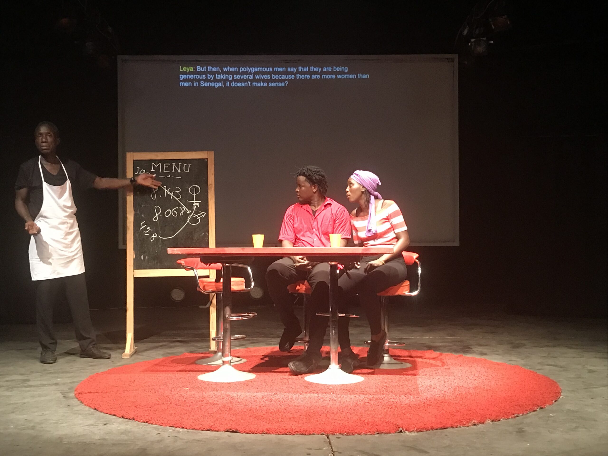 The residency continued with a performance of the play Le Débat, written and directed by Bérengère Brooks. The company’s six actors told the story of a couple debating polygamy. Through this play, Brrr Production seeks to take a closer look at couples’ relationships, the relationship between young people and marriage and polygamy in particular, the place of women in society, and the family, social and friendly pressures that push each of us to make and question our own choices. It’s a way of highlighting, with humour, the contradictions of our society.