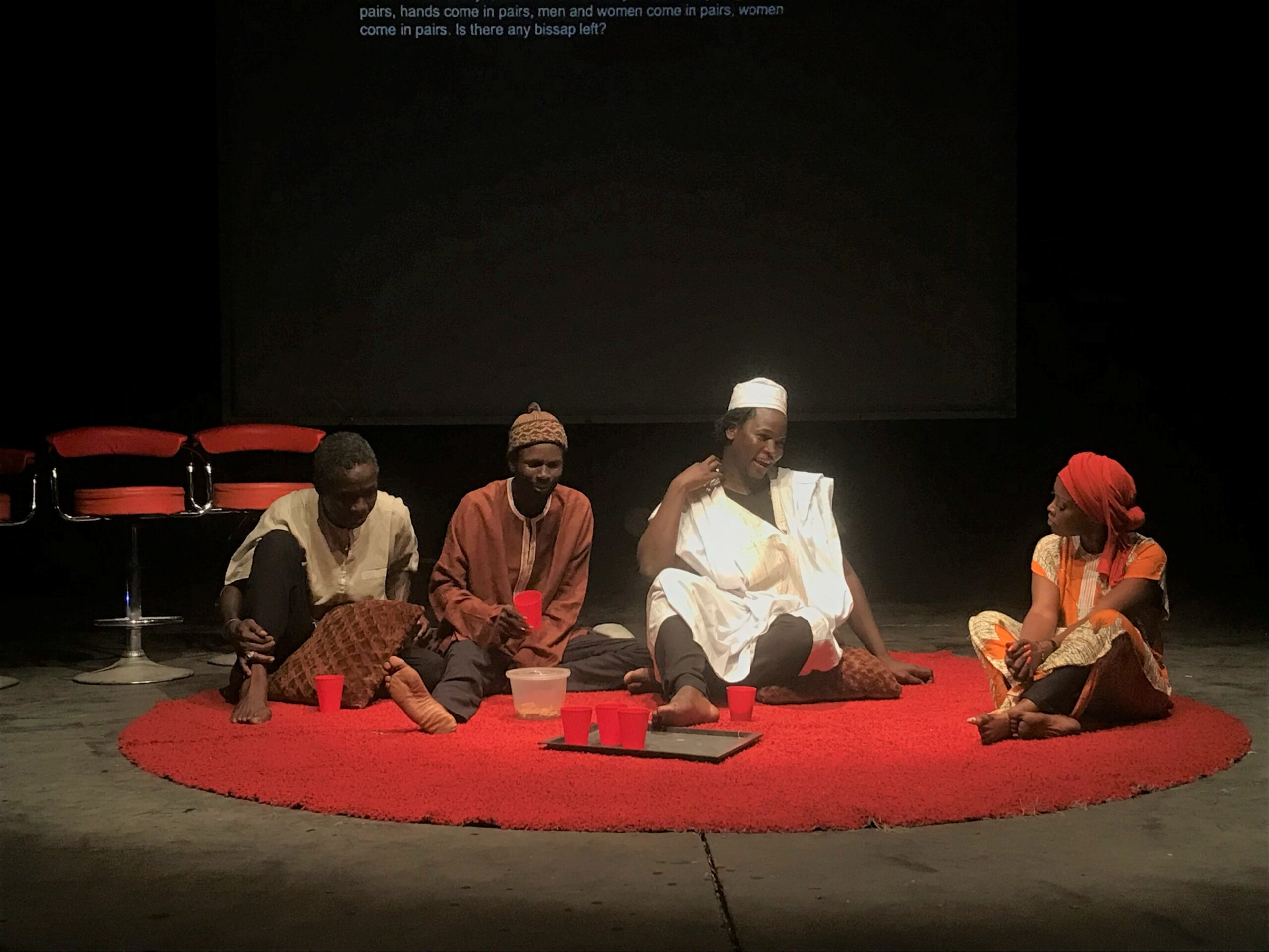The Le débat residency was an opportunity for Bérengère Brooks to deliver a workshop for the Gambia Union of Theatre (GAMUT). Centred on the exploration and embodiment of characters, the various exercises enabled the sixteen participants to see how to work on the individual construction of a character, while at the same time becoming part of a collective.