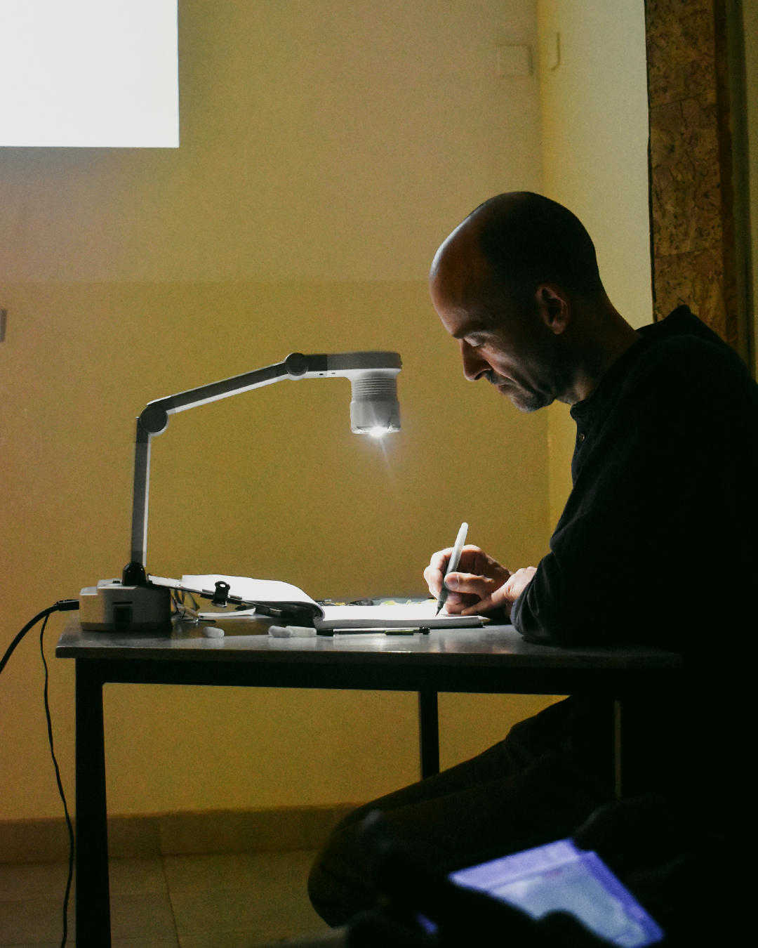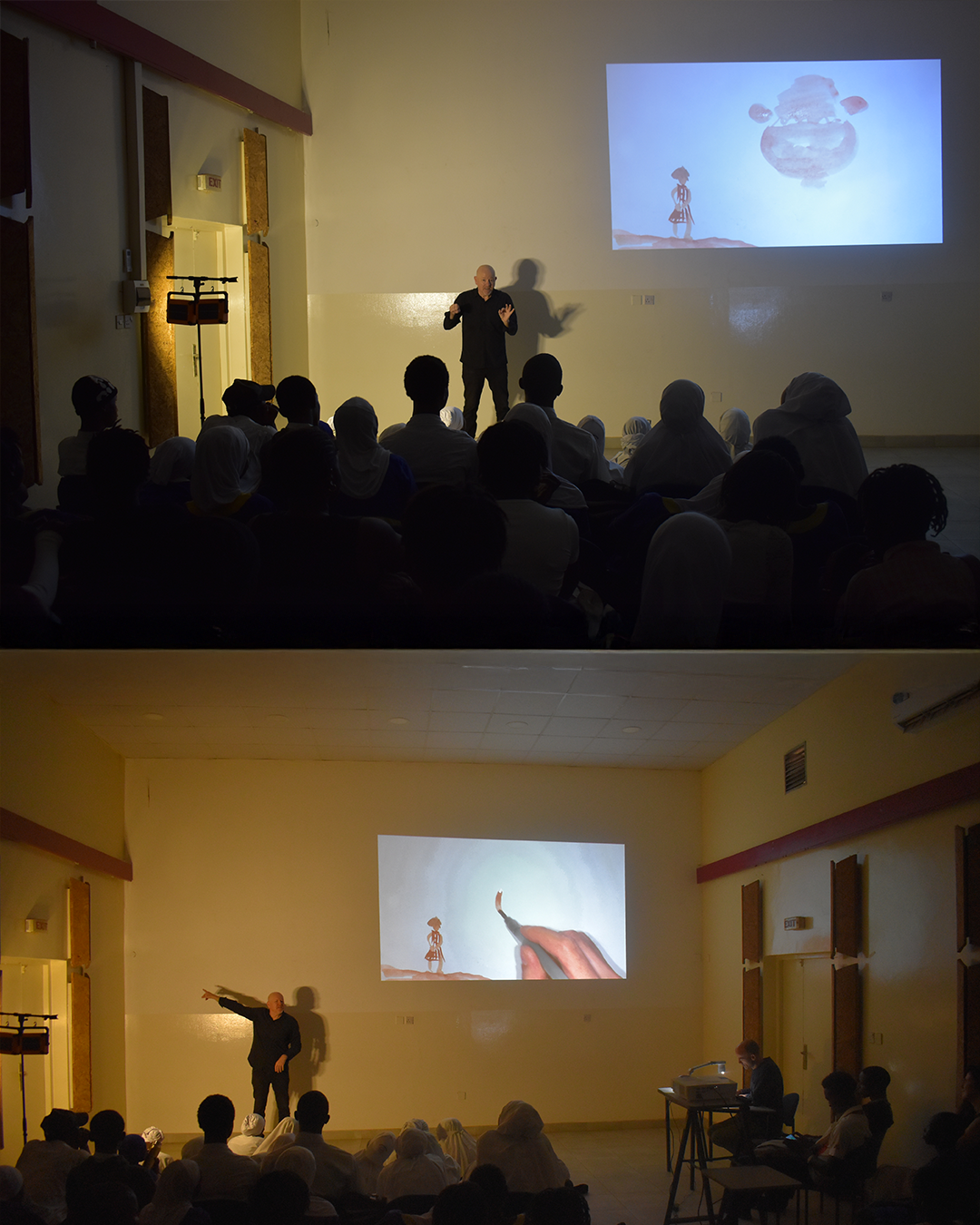 Tout a commencé à l’AFB, avec un premier spectacle illustré devant un jeune public. Une rencontre magique entre la parole et le trait.