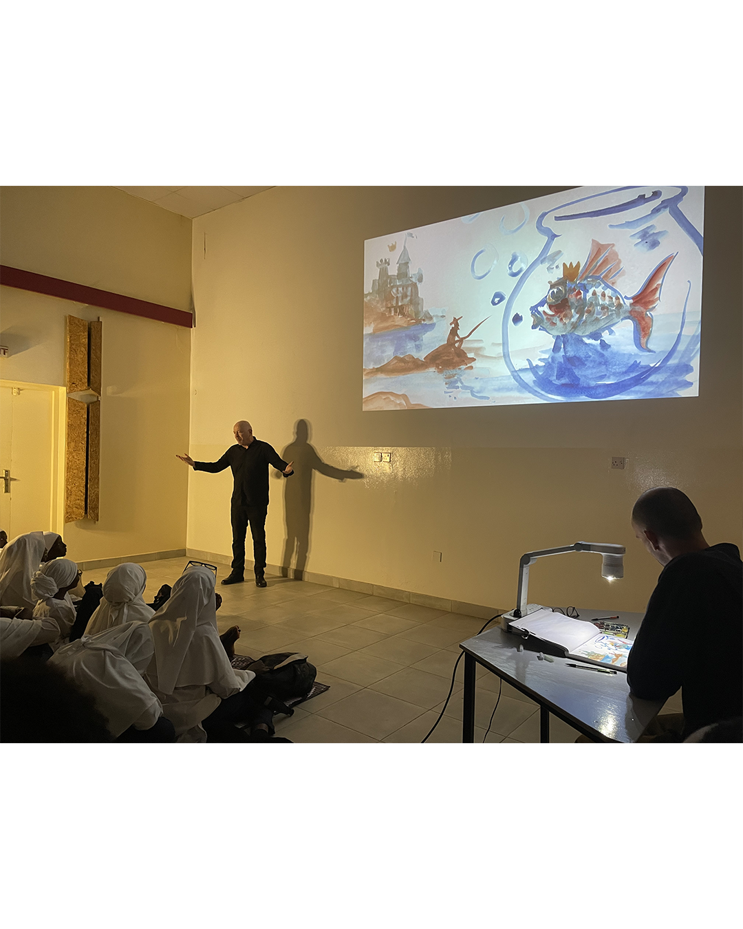 Du 4 au 16 mai 2025, l’Alliance Française de Banjul a l’honneur d’accueillir la Compagnie Troll pour une résidence artistique. Fondée par Richard Petitsigne, comédien, conteur et directeur artistique, cette compagnie se distingue par son travail autour du conte et de l’oralité, qu’elle développe depuis 2005. Accompagné de Fabian Grégoire, auteur et illustrateur d’albums jeunesse, le duo propose des spectacles où la narration se mêle à l’illustration en direct.