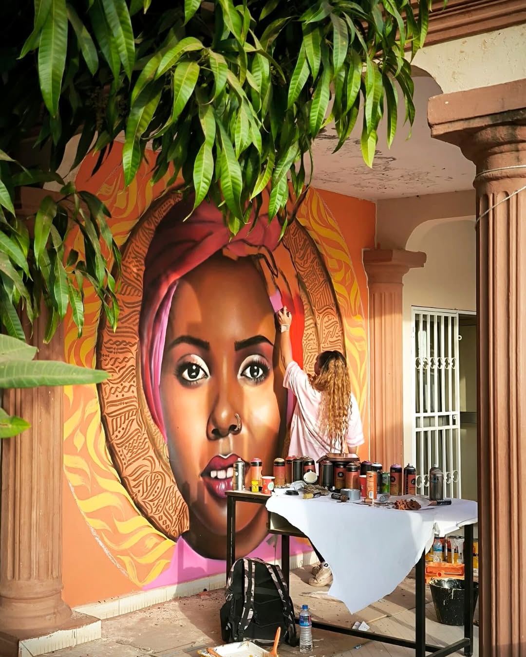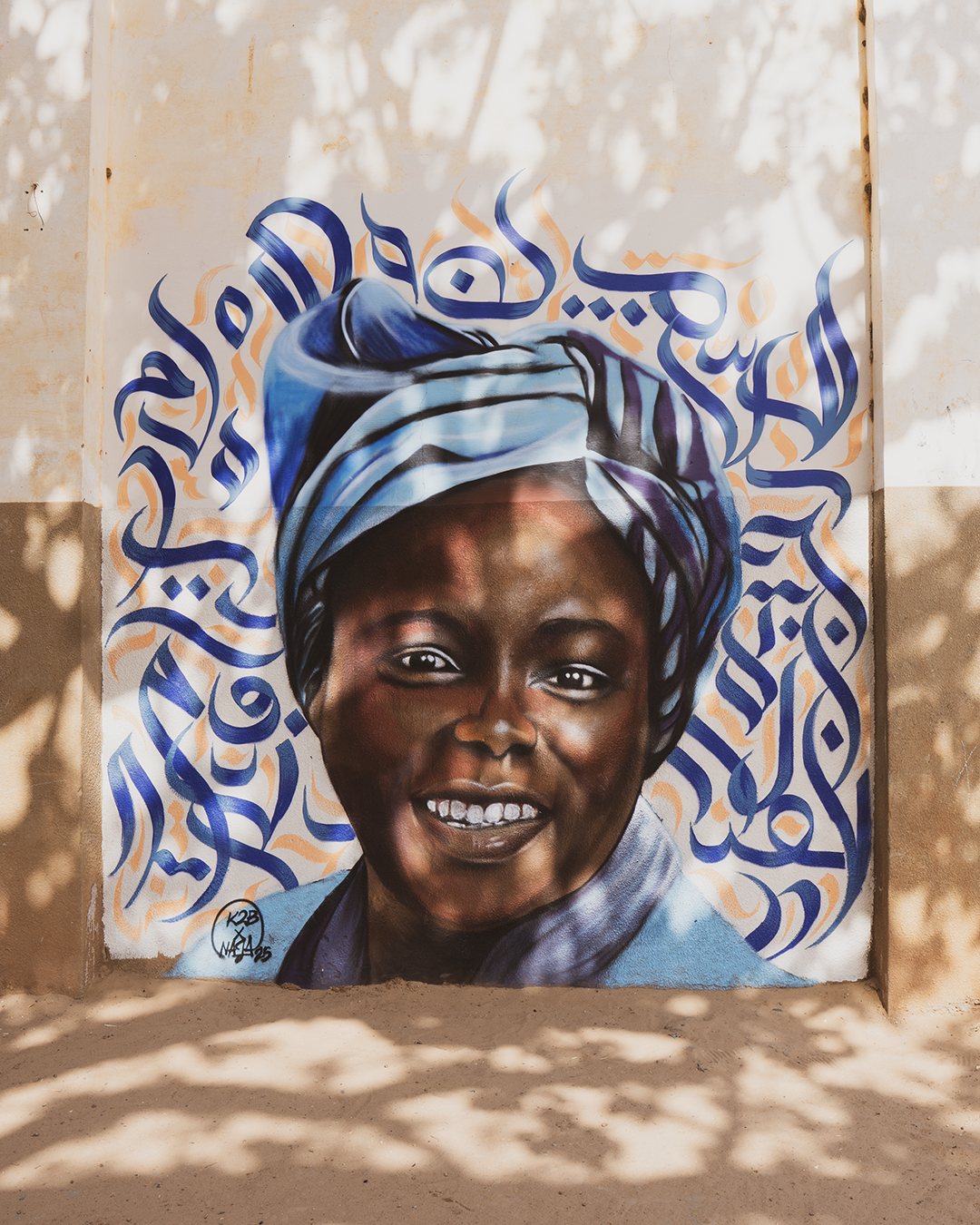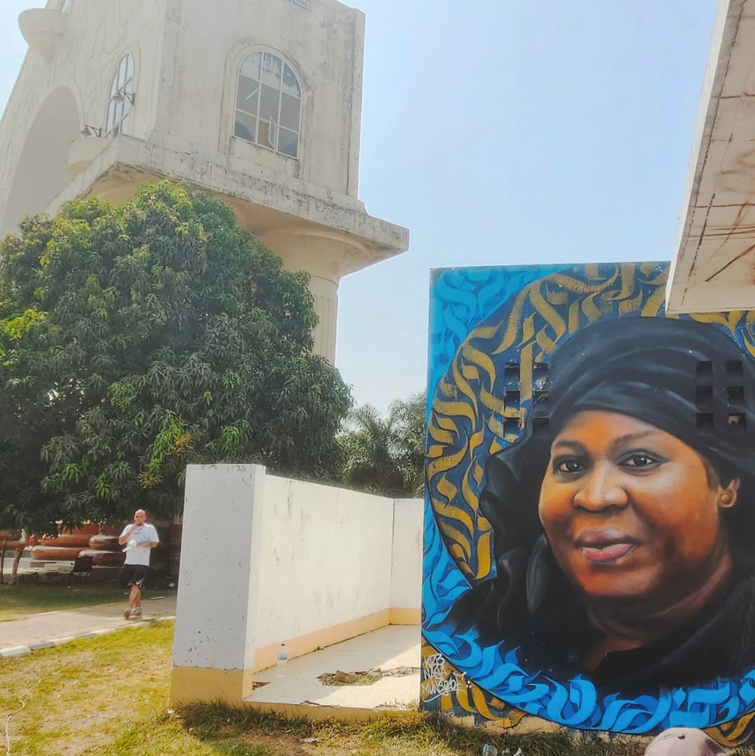 Pendant un mois, K2B et Naja ont réalisé dix fresques monumentales dans les espaces publics de Serrekunda et Banjul, rendant hommage à des femmes influentes d’Afrique et d’ailleurs. Chaque portrait s’intègre dans une démarche artistique forte, mêlant réalisme et calligraphie.